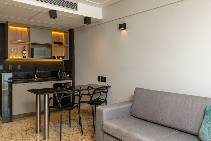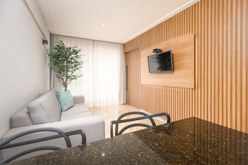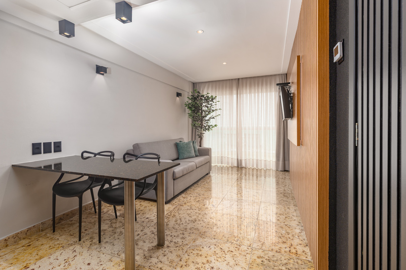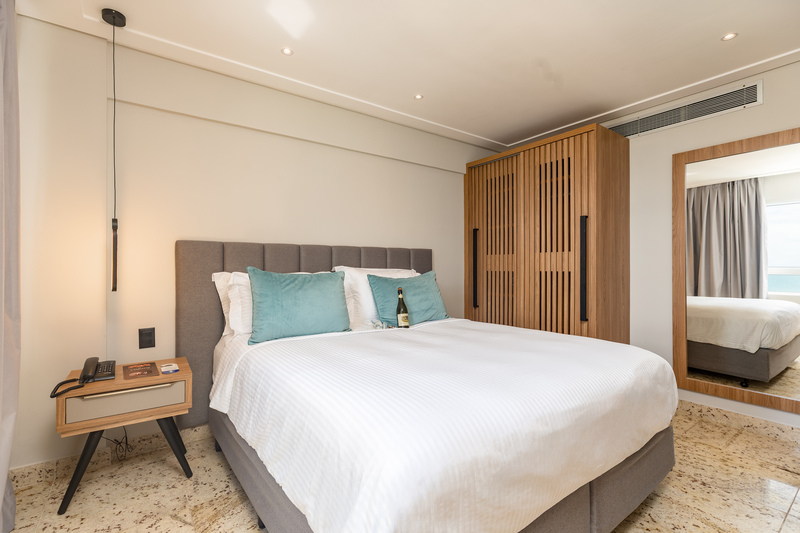 Apartamento elegante com um ambiente moderno, ideal para quem busca conforto e praticidade. Este espaço é perfeito para desfrutar de momentos relaxantes com um toque de sofisticação. Localizado exclusivamente no 5º andar, oferece ainda mais privacidade e tranquilidade. Varanda com mesa e 02 cadeiras. Vista frente ou lateral mar (a depender da disponibilidade). Esta categoria não garante a posição. Podendo ser 1 cama de casal Queen ou 2 de solteiro. Terceira pessoa será acomodada em cama extra, na sala. Área do Apartamento 39m².